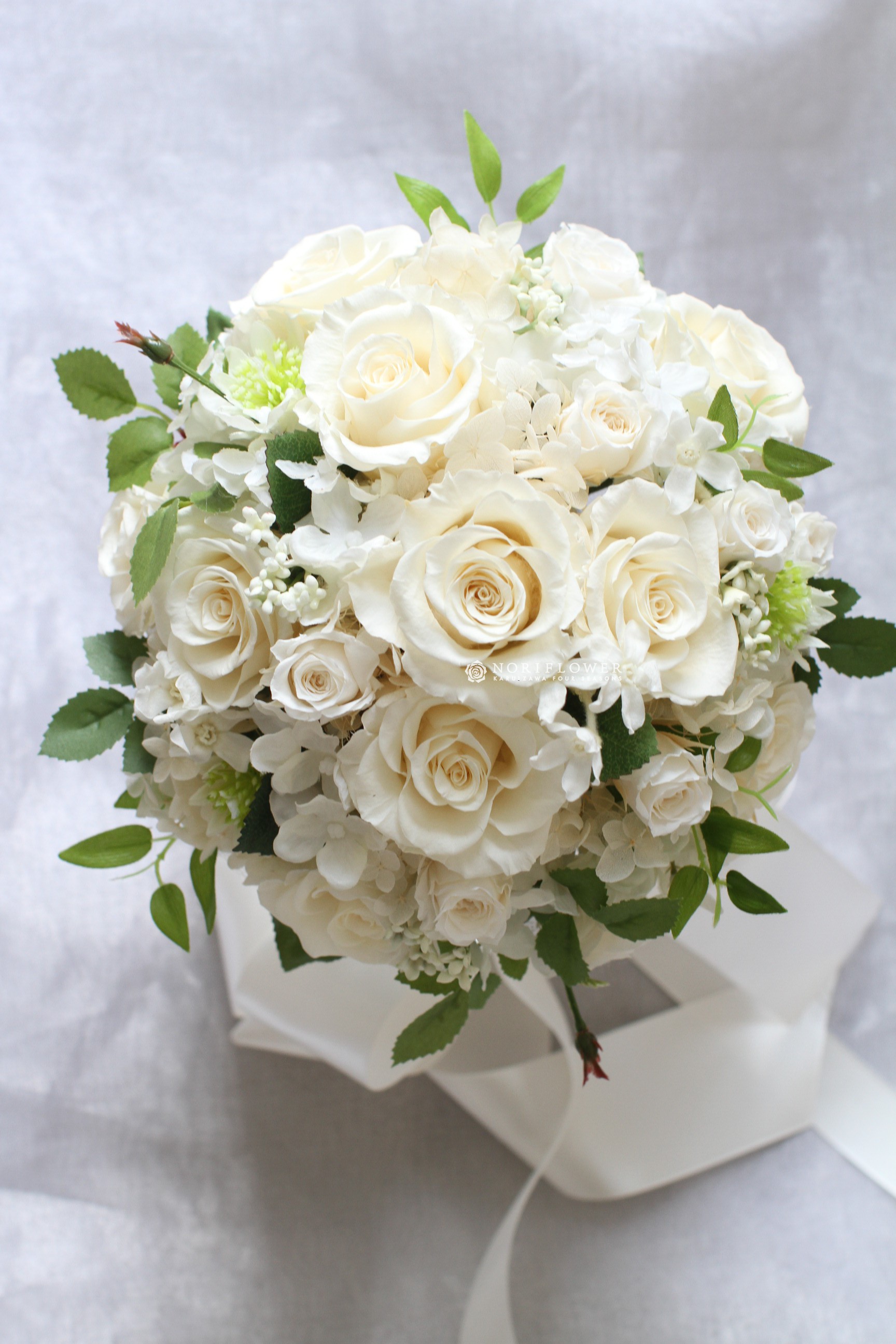 ウェディングブーケ プリザーブドフラワー 軽井沢ウェディングブーケ 白グリーンブーケ