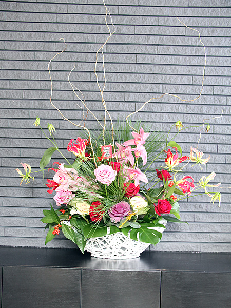 ホテルのエントランス、レストラン、ショールームから、TV、雑誌、ファッションショーなど、様々なシーンにおいて時代のトレンドを反映し、NORIFLOWERの美意識を融合させたフラワー&グリーンコーディネートを提案しています。空間を最大限に生かし、周りの雰囲気との花の調和・景観・・・。花単体としての美しささばかりでなく、周りの魅力を引き出すコーディネートを心がけています。
